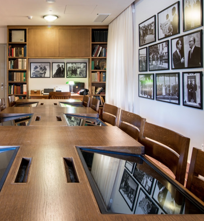 כאן נמצאת המכתבה של אשכול ועל גביה תוכלו להבחין בפריטים רבים.